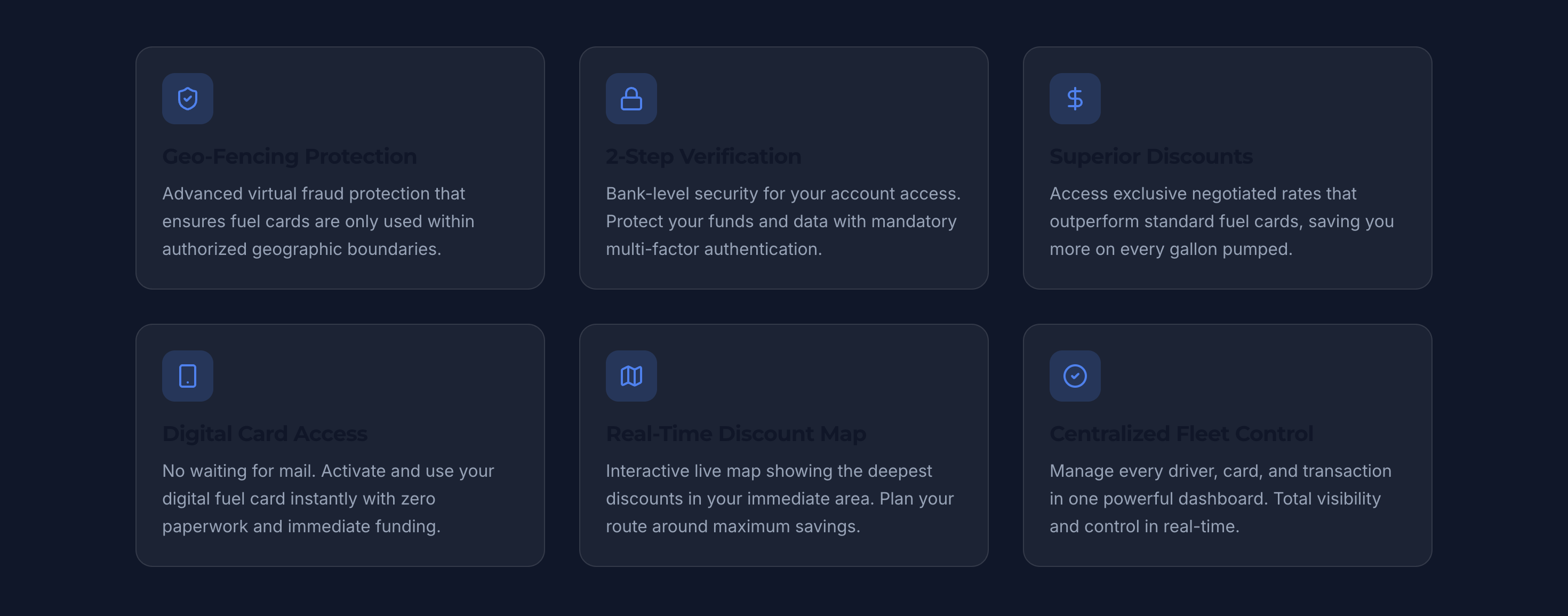 Advanced virtual fraud protection that ensures fuel cards are only used within authorized geographic boundaries.
